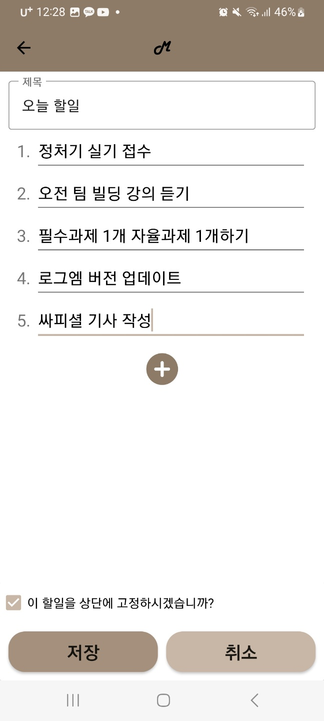 할 일과 중요 사항을 저장해둘 수 있는 메모 앱