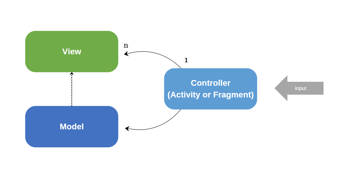 이는 MVC 패턴의 원래 의도와는 약간 다른데, MVC 패턴은 뷰와 컨트롤러를 완전히 분리하여 각각의 역할을 명확하게 하는 것을 목표로 합니다. 그러나 Android에서 이를 완전히 분리하기는 어렵습니다. 이런 이유로 Android 개발에서는 MVP나 MVVM과 같은 다른 아키텍처 패턴이 더 많이 사용됩니다. 이런 패턴들은 액티비티를 뷰로 두고, 이를 제어하는 로직을 별도의 Presenter나 ViewModel 클래스로 분리하여 뷰와 비즈니스 로직을 분리하는 것을 목표로 합니다.