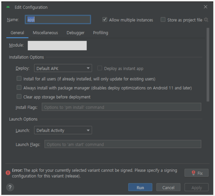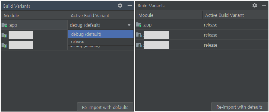이런 문제를 해결하기 위해, 기본 빌드 타입을 release로 변경하고 앱을 실행하는 방법을 알아보겠습니다.