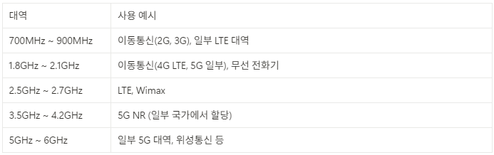 - 주로 통신사, 방송국, 군사, 항공, 위성 통신 등 중요하고 간섭이 없어야 하는 서비스에 할당됩니다.
